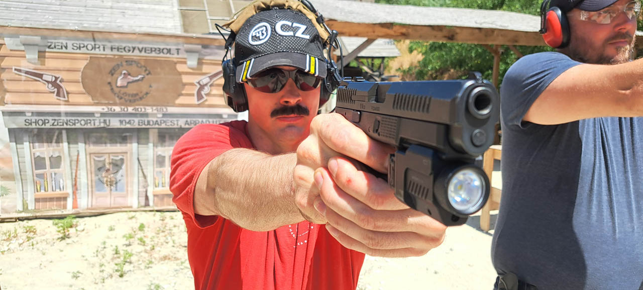 Persze mindenki szeretne hátraszaltózás közben, egyszerre két pisztollyal, váltott célpontokra tüzelni, aminek viszont kevés realitása van ameddig tíz méterről, statikusan sem tudja valaki stabilan eltalálni a 25 centiméteres fémcélokat sem. A valóság kellemetlen pofonokat tud adni.