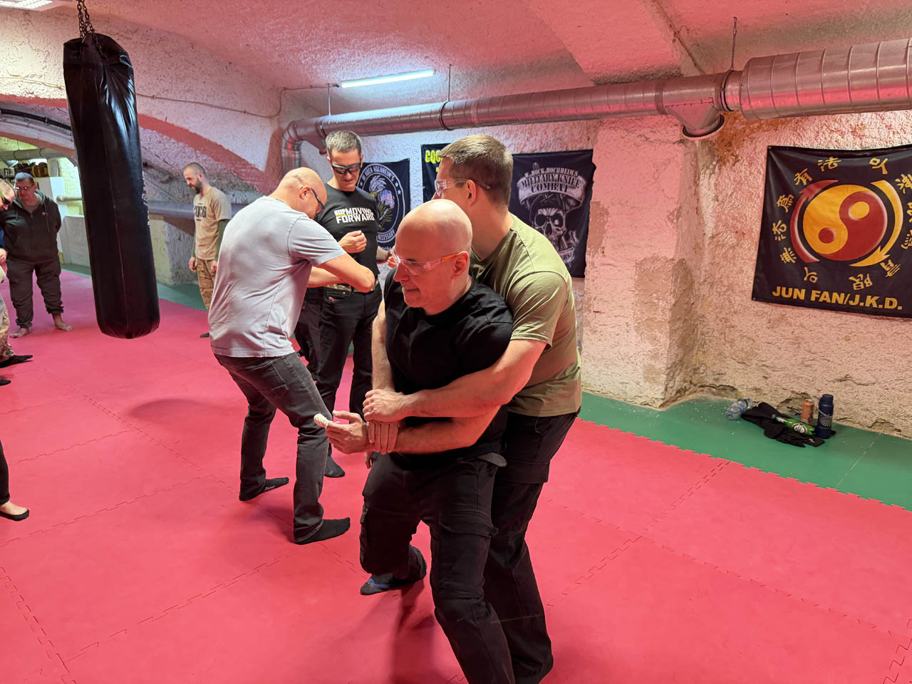 Az idei, ötórás, évzáró szemináriumunk középpontjában ezúttal a kifejezetten mindennapi, rejtett hordásra tervezett, egykezes nyitású taktikai és EDC kések álltak. Ennek megfelelően a tréning az átlagos késes képzésektől eltérően, nem a szokásos, nagy, masszív, fix pengés kések, hanem kifejezetten a rövid, kompakt, könnyű, legtöbbek által a hétköznapok során zsebben hordott, egy kézzel nyitható kések önvédelmi alkalmazásával foglalkozott.