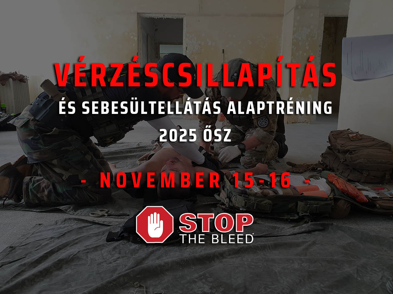 A kétnapos tréning során elsajátíthatók a nagy volumenű vérzések csillapításának és a kisebb sérülések ellátásának, valamint az eszköz nélküli és az alacsonyszintű eszközös légútbiztosítás alapjai.